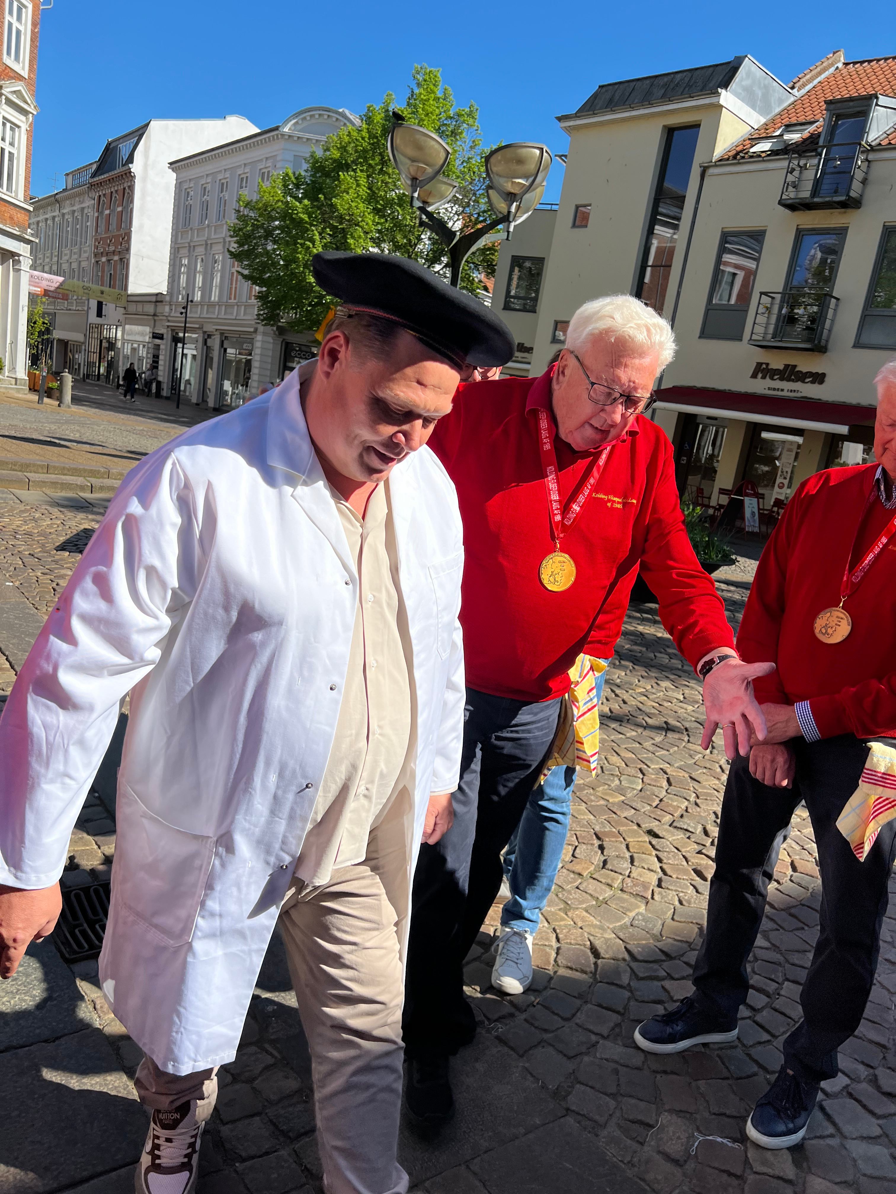 behørigt stadset op med ringlende medaljer og andet fornemt. Flisepudserne træder i aktion.